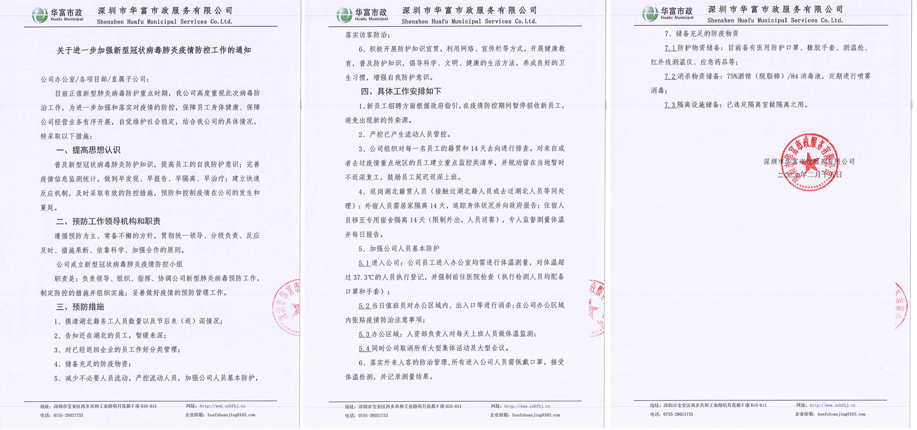 215日,公司下发了《关于进一步加强新型冠状病毒肺炎疫情防控工作的通知》,成立了91免费下载安装市政新型冠状病毒感染的肺炎疫情防控工作领导指挥小组,明确了各成员单位的工作职责,对公司防控工作进行了具体安排。