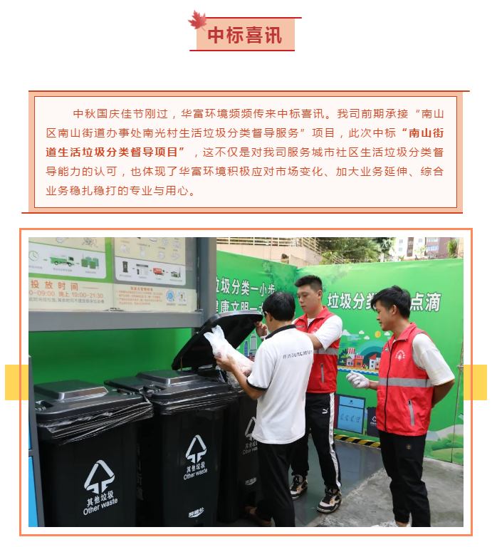喜讯连连 | 中标“南山街道生活垃圾分类督导项目”