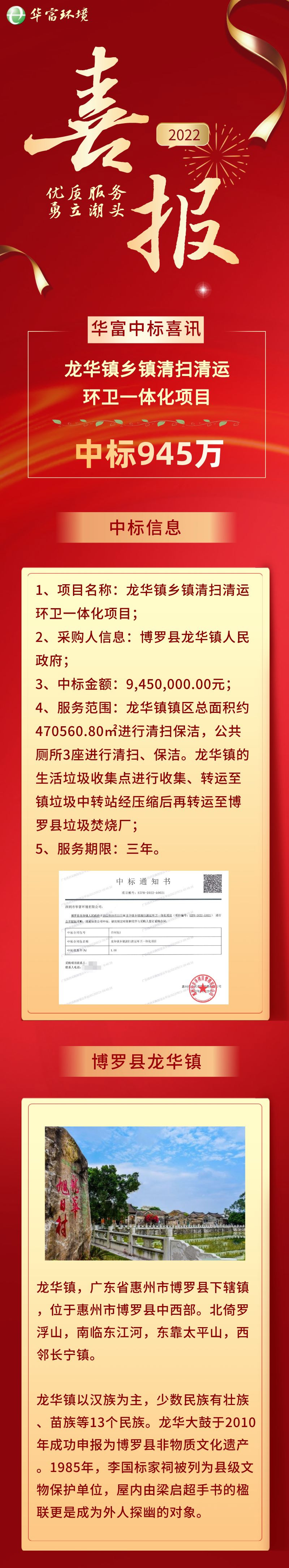喜报 | 中标龙华镇乡镇清扫清运环卫一体化项目