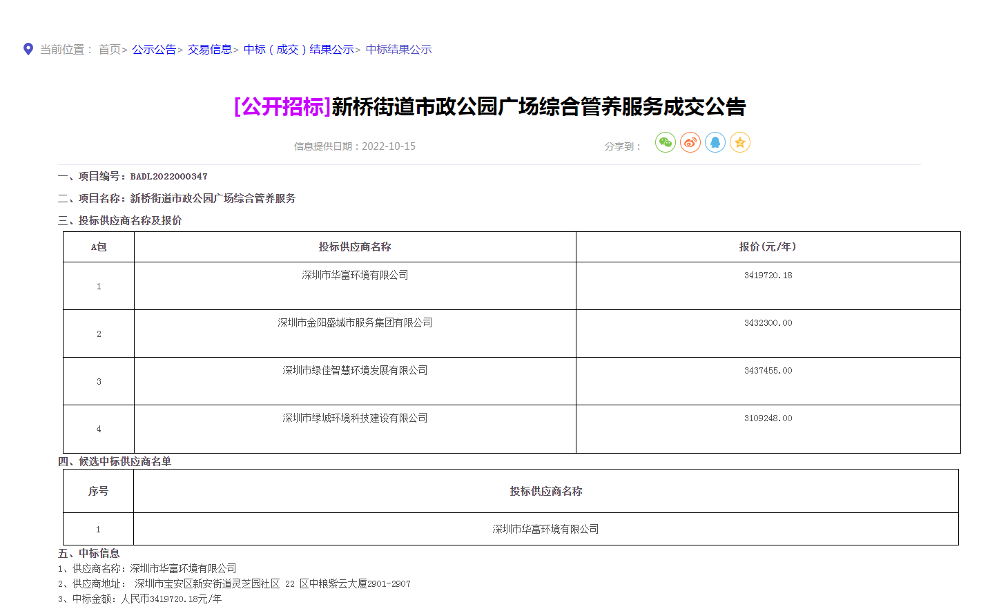 中标通告