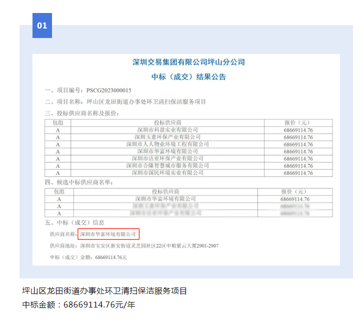 深圳坪山区,作为新型环卫市场的战略要地,此次中标为我司第二次中标坪山区环卫清扫服务项目,为深入推进坪山环卫市场筑牢了更扎实的地基。