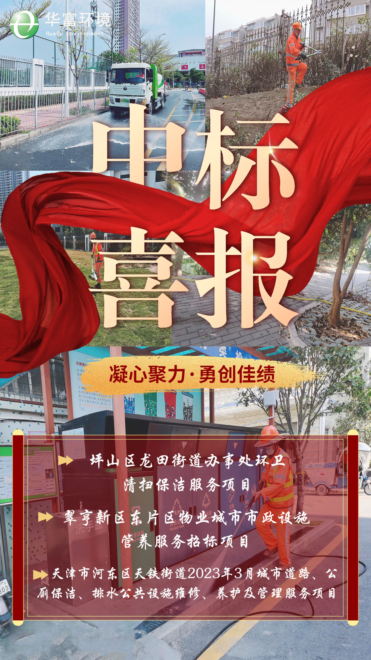 烟花三月,生机盎然,91免费下载安装环境喜报频传,凭借深耕环卫行业三十年的雄厚综合实力,成功中标“坪山区龙田街道办事处环卫清扫保洁服务项目”、“天津市河东区天铁街道2023年3月城市道路、公厕保洁、排水公共设施维修、养护及管理服务项目”、“翠亨新区东片区物业城市市政设施管养服务招标项目”。
