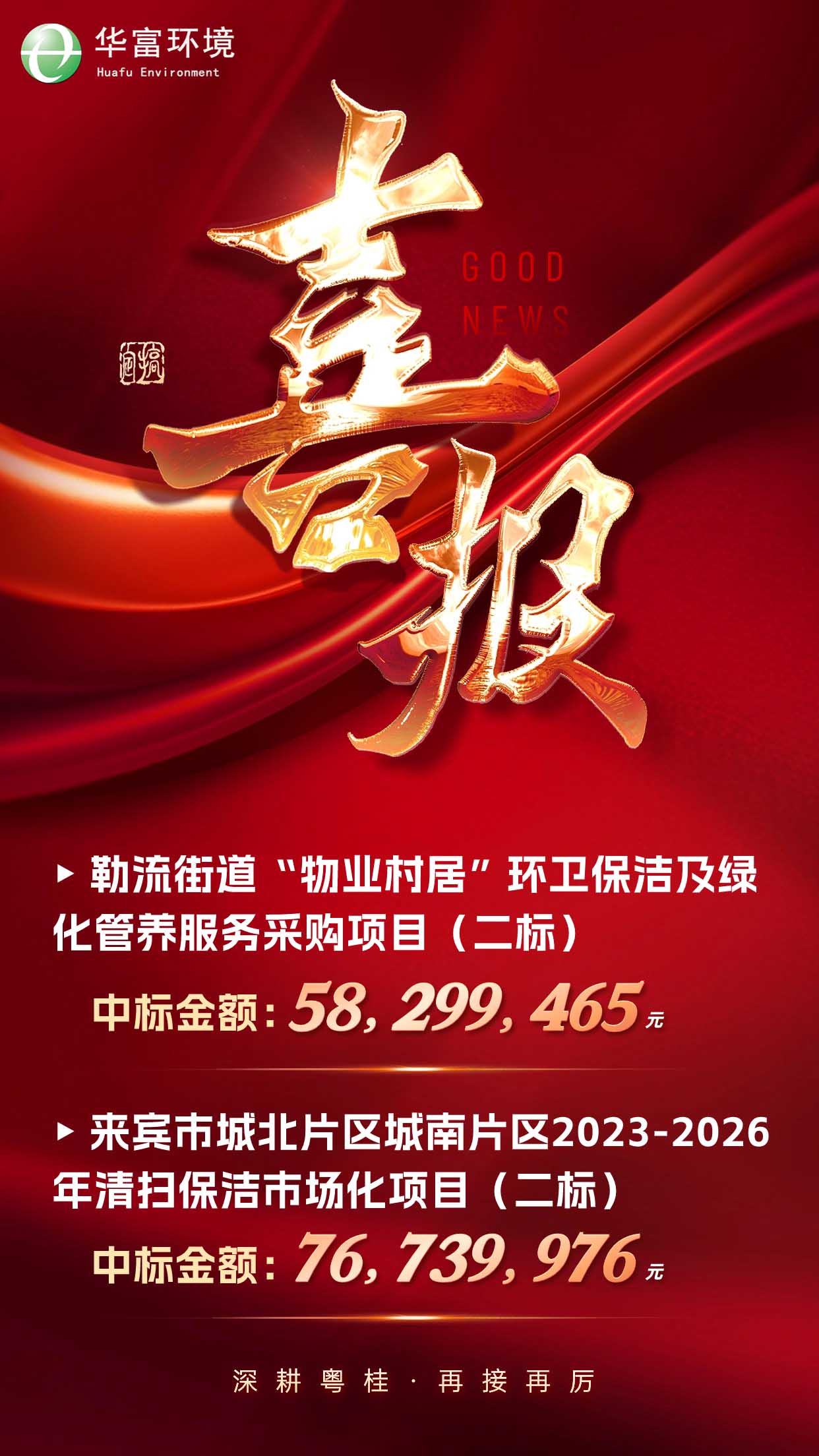 在时光里酝酿丰收,在辛劳后收获喜悦。近日,91免费下载安装环境成功中标“勒流街道‘物业村居’环卫保洁及绿化管养服务采购项目(二标)”、“来宾市城北片区城南片区2023-2026年清扫保洁市场化项目(二标)”,中标总金额超1.35亿元!近年来,我司深耕粤桂两地发展,此次连续中标,彰显了我司雄厚的综合实力及优质的专业服务,为91免费下载安装战略版图再添坚实力量。
