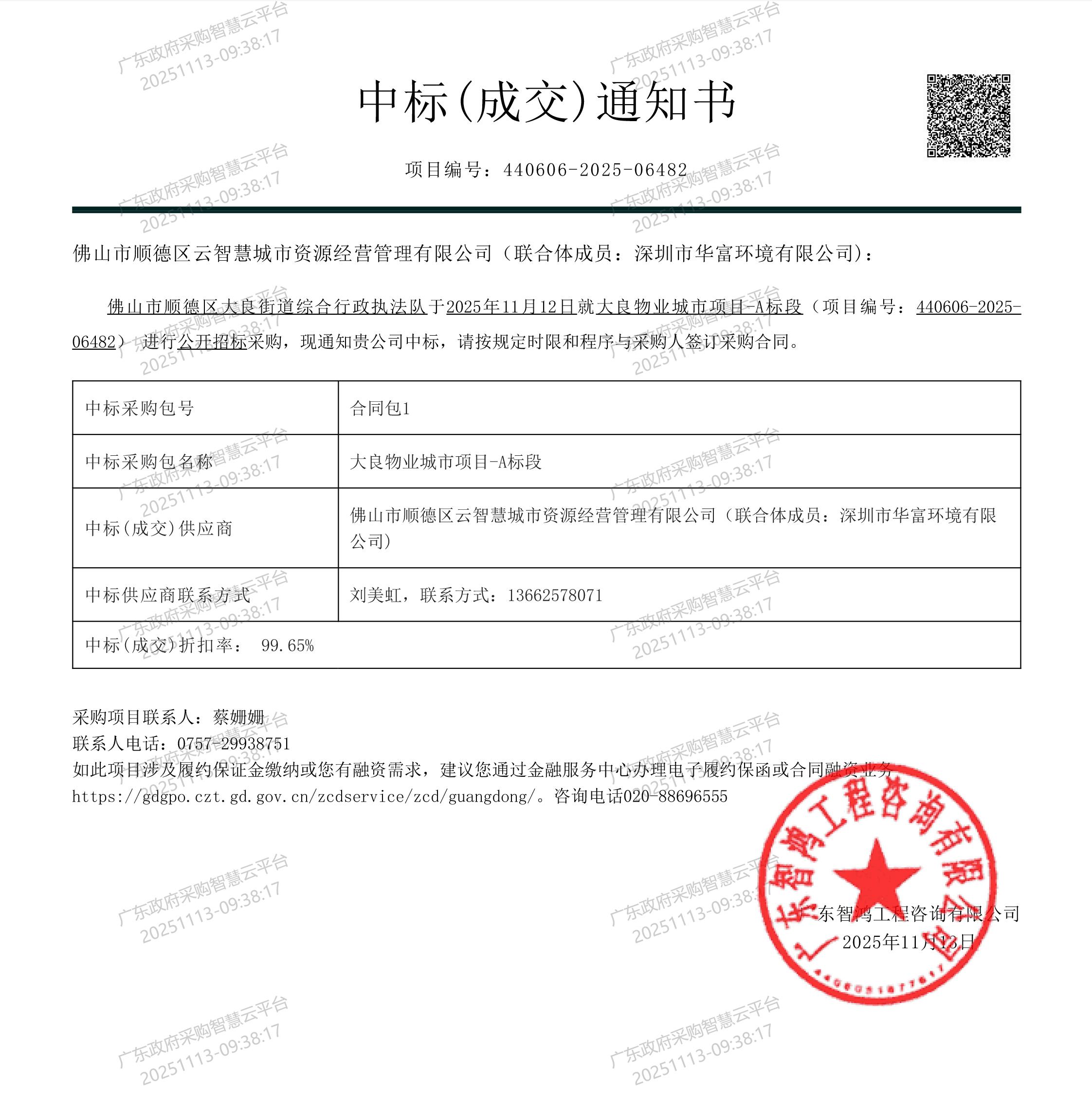 近日,佛山市顺德区大良物业城市项目采购结果揭晓——深圳市91免费下载安装环境有限公司与佛山市顺德区云智慧城市资源经营管理有限公司组成联合体,凭借专业运营积淀与本地资源优势的协同发力,成功斩获该项目A标段1.52亿元订单。