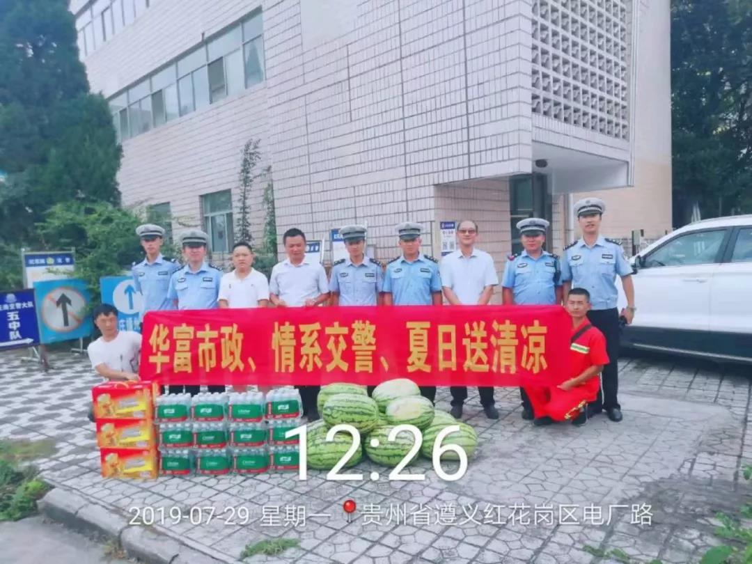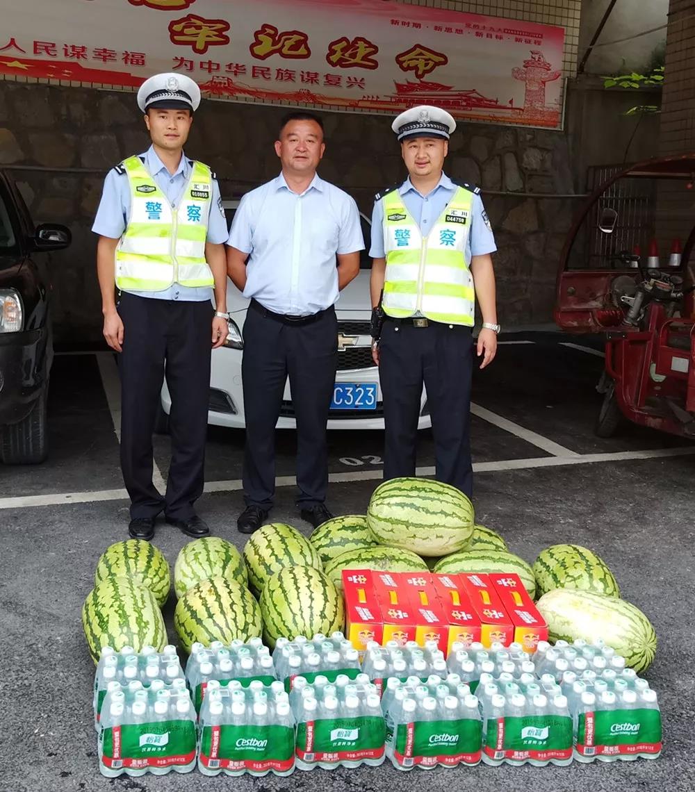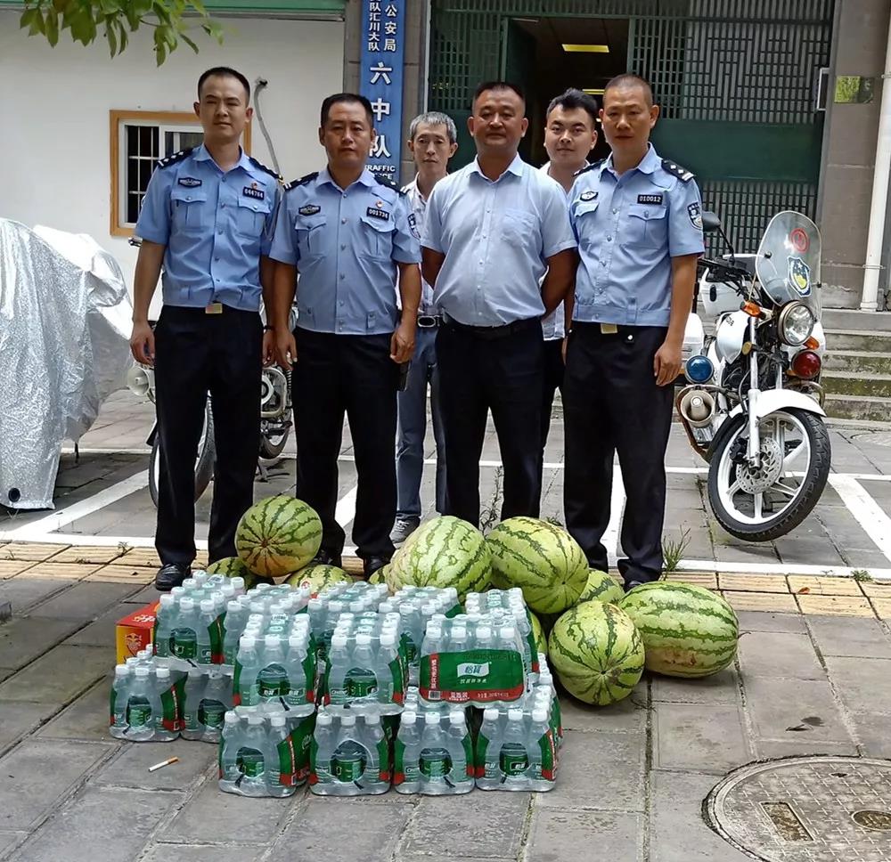 为了表达对交警同志的深情厚谊和对他们辛苦工作的敬佩,近日,我公司管理人员来到红花岗区交警支队五中队,汇川区交警支队六中队和三中队,为他们送上降温解渴的矿泉水和西瓜,带去夏日的一份清凉,向他们表示真诚的问候和祝福,感谢他们顶烈日、战酷暑,坚守街头维持良好的交通秩序。