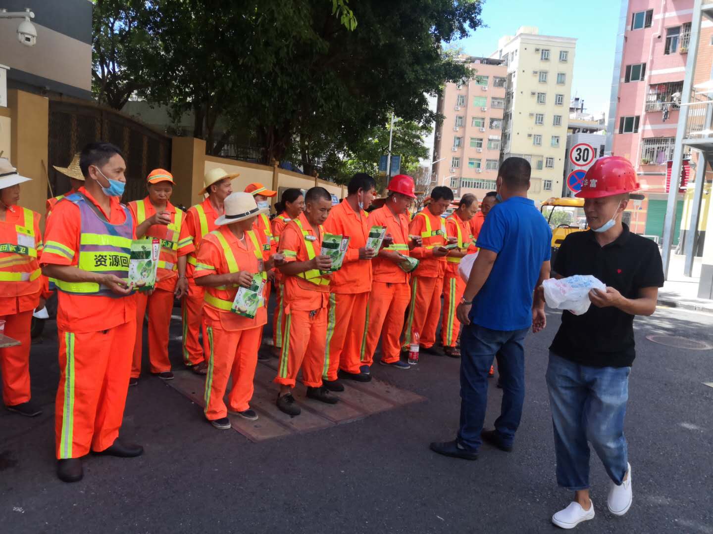 91免费下载安装福保项目员工派发凉茶及防暑用品